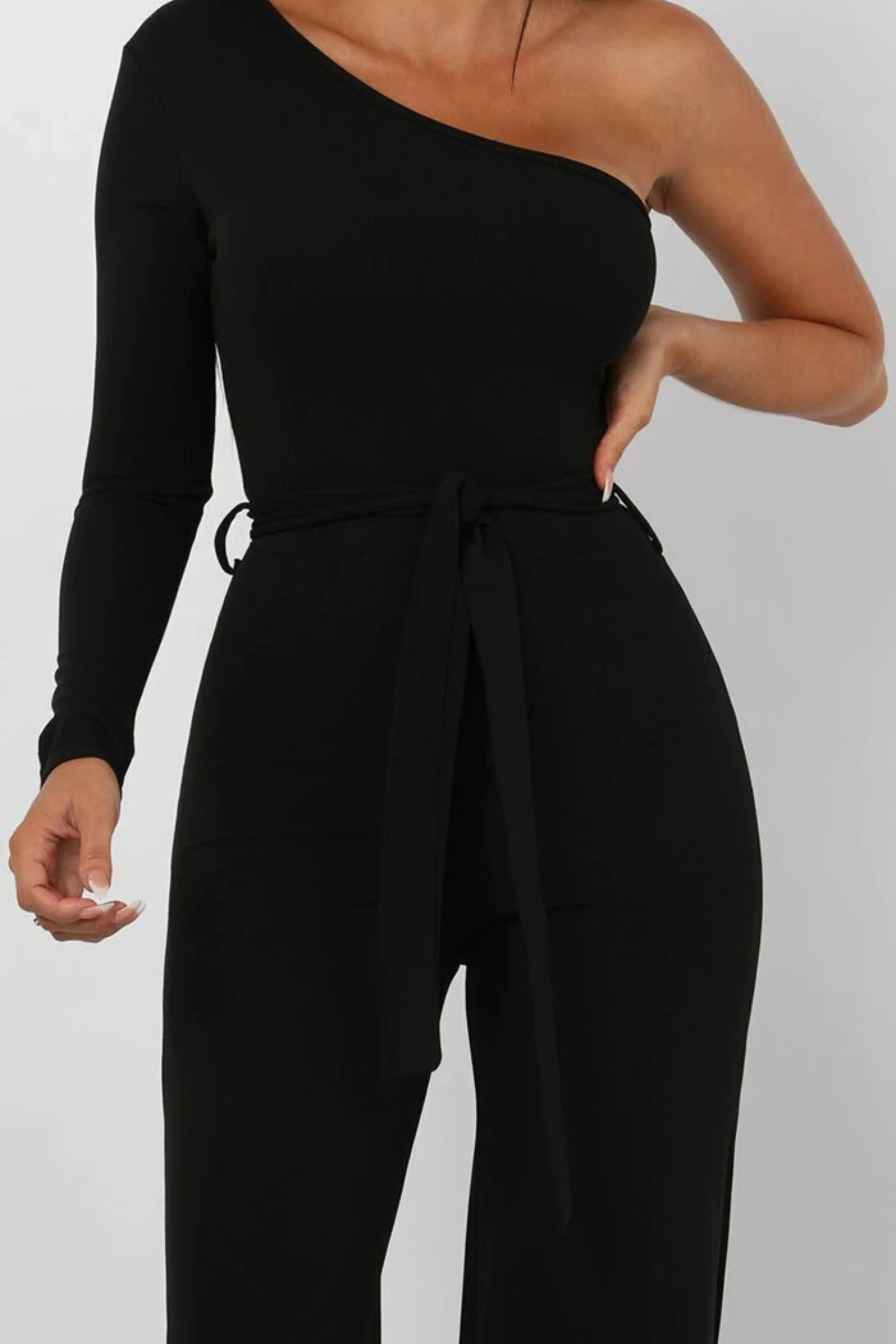 Black Belted One Shoulder Jumpsuit - Evelyn