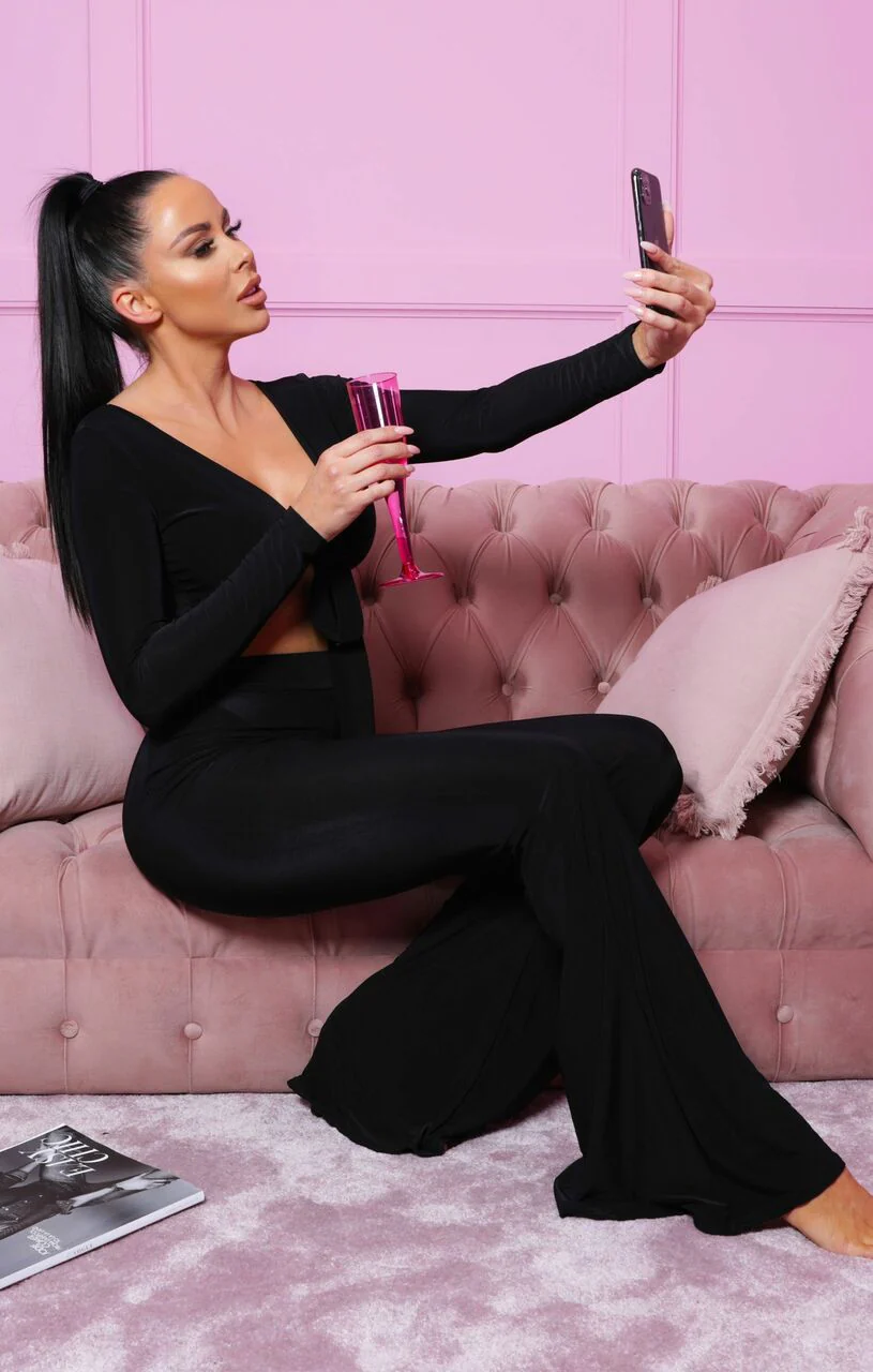 Girl gets ready to show off your curves with these Black Slinky Front Tie Two Piece Set. This hot two piece set is a must have for so many reasons! with its tie front detailing and high waisted leggings along with the in demand, this hot two piece set is the ideal party outfit for AW18. Team this luxe co-ord up with some perspex heels and metallic accessories for a look that will turn heads. This affordable two piece set is an essential in your wardrobe update this season.