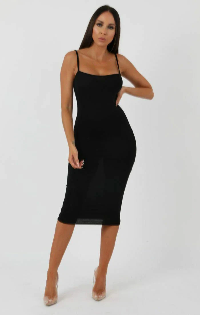 -70%Black Strappy Bodycon Midi Dress - Poppy—