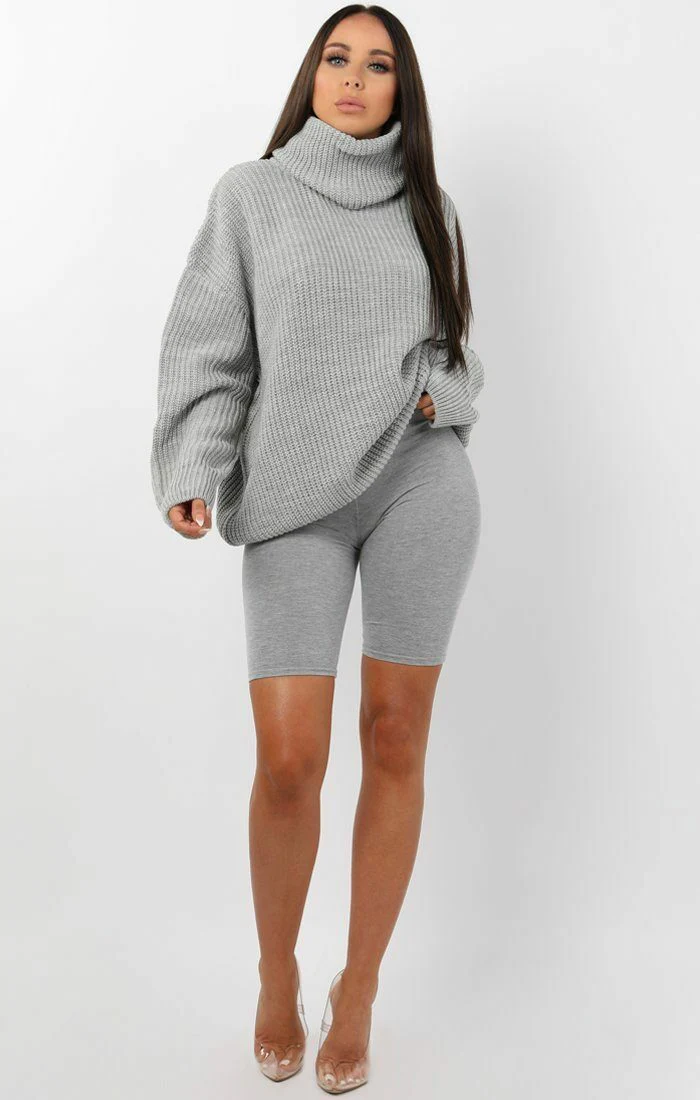 Grey Knitted Oversized Polo Neck Jumper - Polly