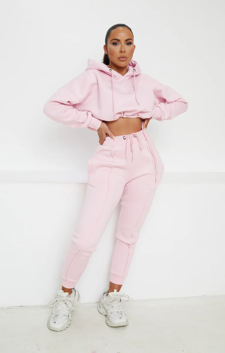 Pink Boxy Cropped Hoodie Cuffed Joggers Loungewear Set