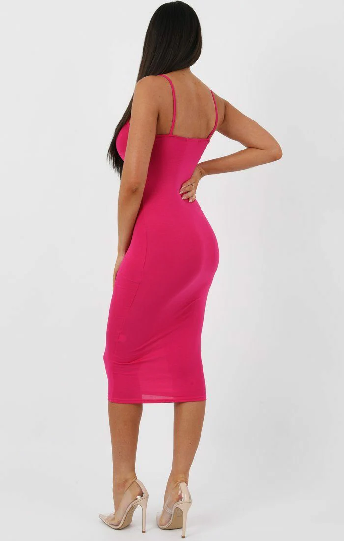 Pink Strappy Bodycon Midi Dress - Poppy